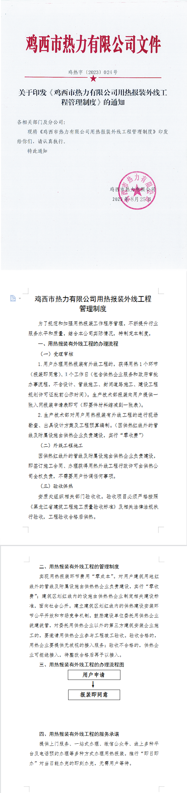關(guān)于印發(fā)《雞西市熱力有限公司用熱報(bào)裝外線(xiàn)工程管理制度》的通知